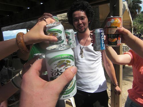 能古島についたら、すぐにバーベキュー!! そして、呑んで、泳ぎました!